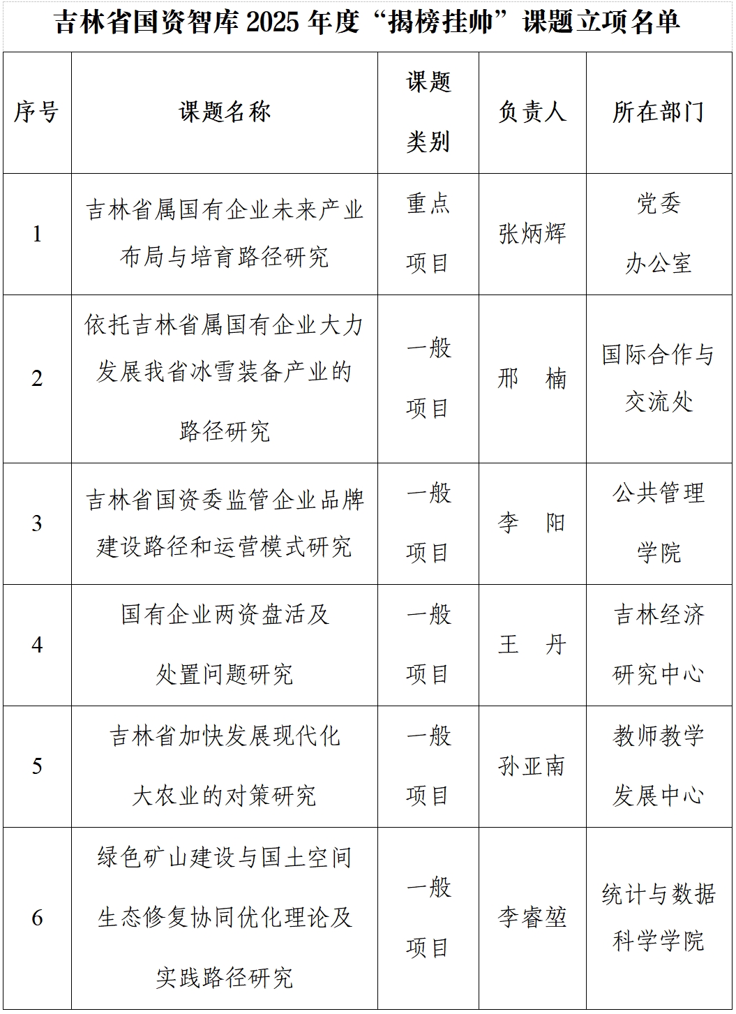 孙明指出,省国资委组建吉林省国资国企智库,创新采取“N+X”模式与“揭榜挂帅”机制,吉林财经大学此次一举揭榜6项课题,数量居全省高校首位。他希望,课题团队要坚持问题导向,聚焦全省国资国企改革发展的重点任务,组织研究团队深入企业一线开展调研,精准把握企业发展实际需求,形成可落地、可推广的政策建议和实践方案。